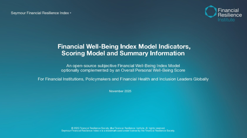 [1] The definition for ‘Financial Well-Being’ for the Personal Financial Well-Being Framework was developed by CFPB (Consumer Financial Protection Bureau) in the US and was adopted by our organization. The proprietary Financial Well-Being Framework was developed by Seymour Consulting (now Financial Resilience Institute) with this peer-reviewed by many organizations and academics around the world.